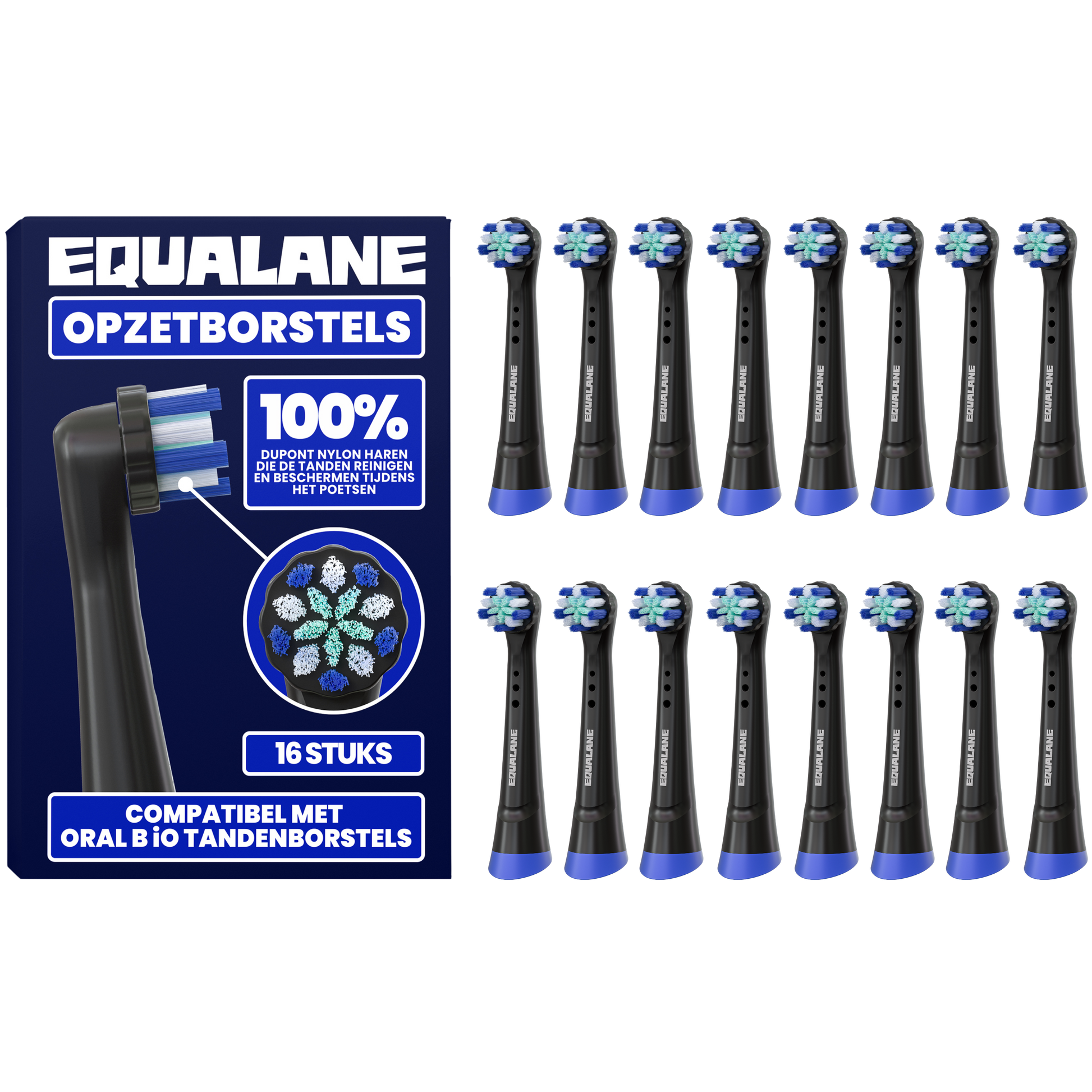 Opzetborstels geschikt voor Oral B iO tandenborstels - Zachte Borstelharen - Zwart - 16 Stuks
